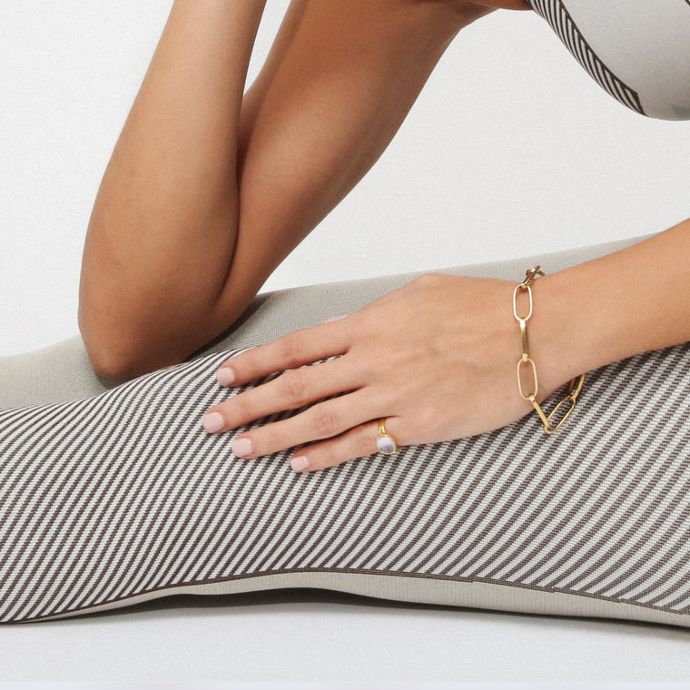 Part of the Talisma collection, the Bacchia Ring channels strength through simplicity. A single stone rests securely on a horizontal rod, anchored by two balanced spheres like a protective amulet in perfect tension. Symbolic of clarity, grounding, and duality, this piece blends minimalist structure with quiet mysticism. Wear it as a modern day talisman, a reminder that beauty and power often live in balance.