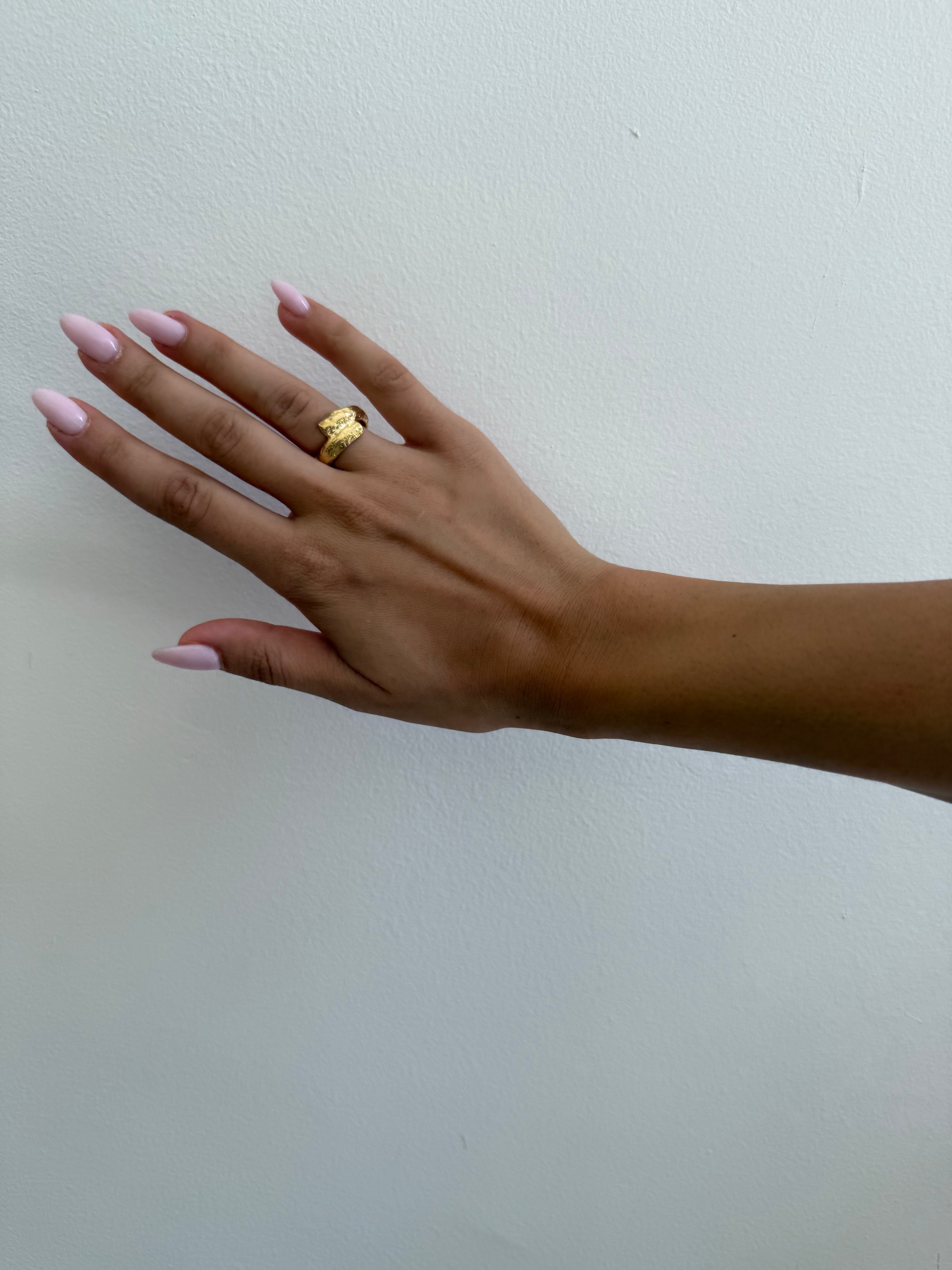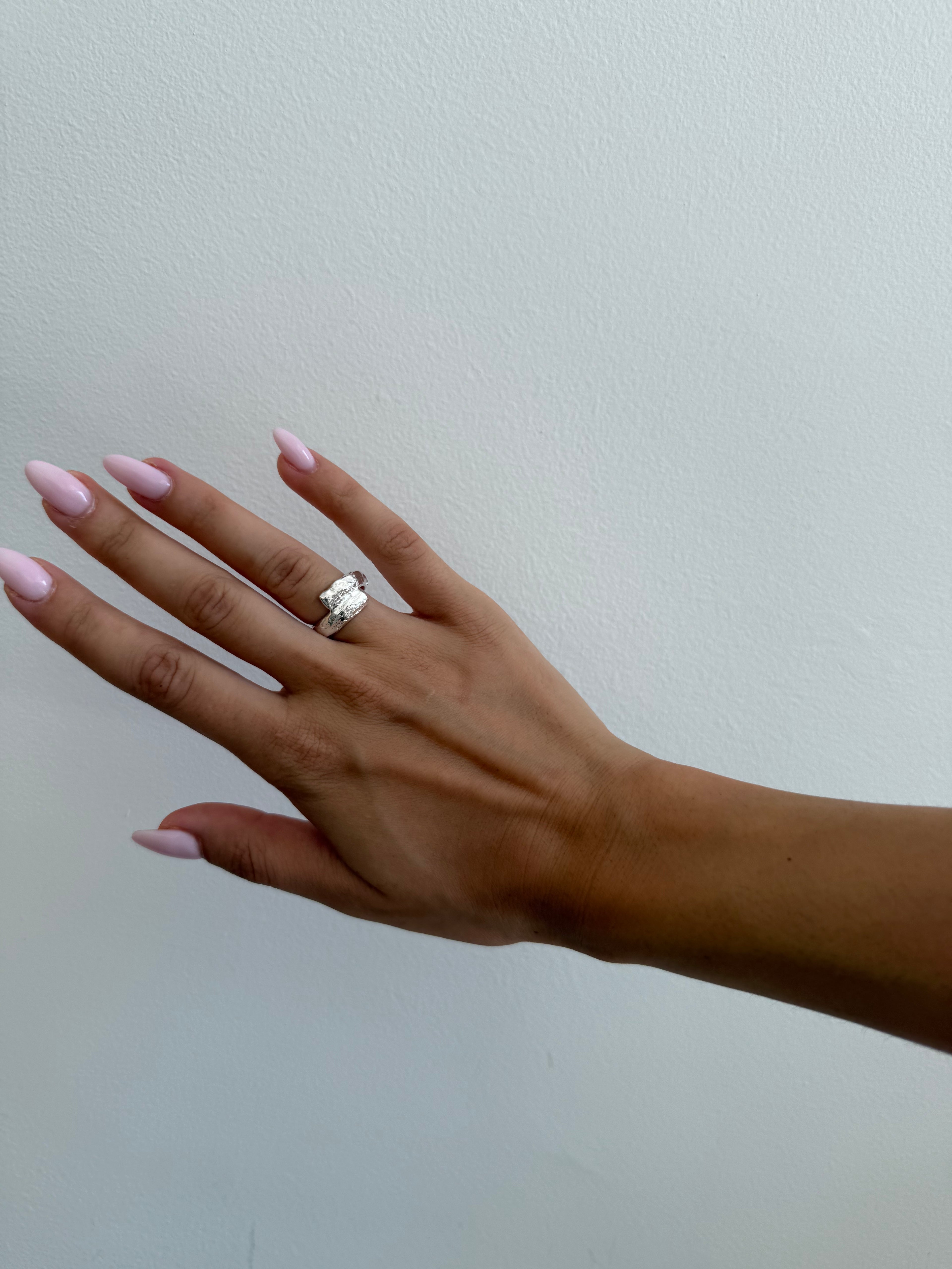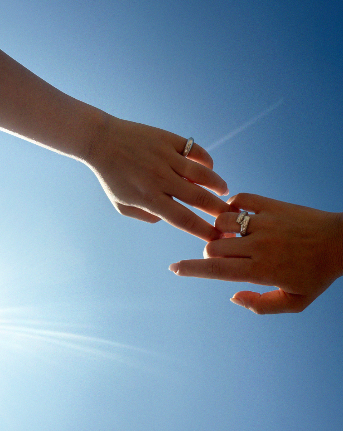 The Molten Puzzle Ring is a captivating piece that mimics the fluid, interwoven patterns of ocean waves. Crafted to embody the dynamic movement of the sea, this ring features sculptural molten like details that interlock in a unique, puzzle inspired design. It’s a bold yet refined statement, perfect for stacking or wearing solo to evoke the natural rhythm of the coastline.